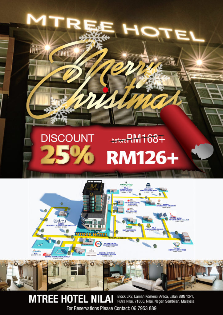 4 Dec Mtree Nilai Manager0Uncategorized CHRISTMAS SPECIAL PROMOTION!!! DISCOUNT up to 25% from RM 126.00!!! New Hotel, New Feel. Something you wouldn’t want to miss!!!